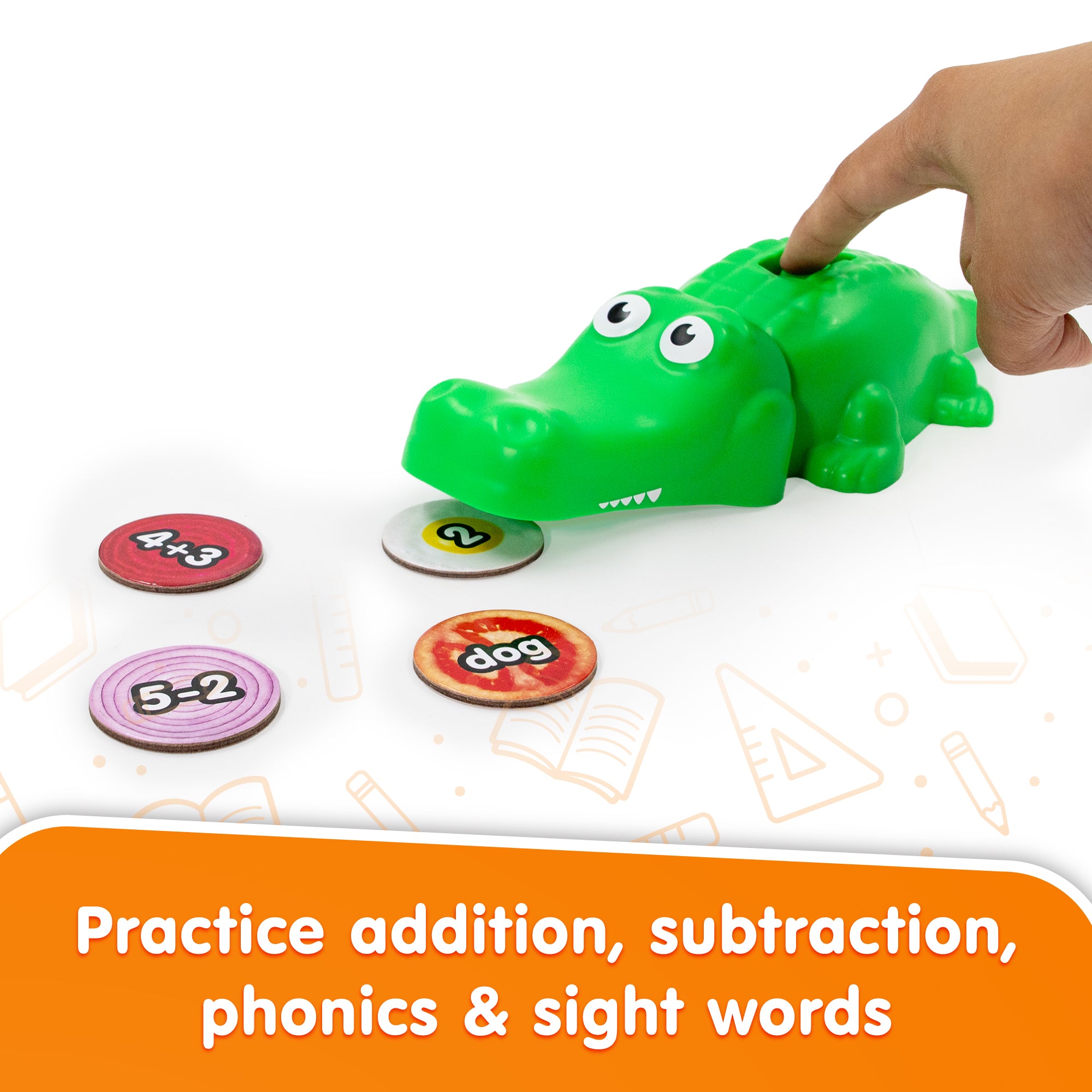 Get ready for a learning adventure that’s full of bites and bright ideas! Crocodile Chomper is a playful, interactive crocodile toy that gobbles up learning counters to help teach math facts and reading skills. Just place tiles or tokens in front of your chomping croc, then read the word or solve the sum chomp! and the learning clicks into place! How It Works: 1. Place learning counters or tiles in front of your Crocodile Chomper. 2. Solve the equation or read the word. 3. Feed it to your croc and watch learning come alive! Fully compatible with Junior Learning Snacks (sold separately) for even more chomping challenges! Make learning irresistible with Crocodile Chompers the toy that turns skill-building into a snackable game!
