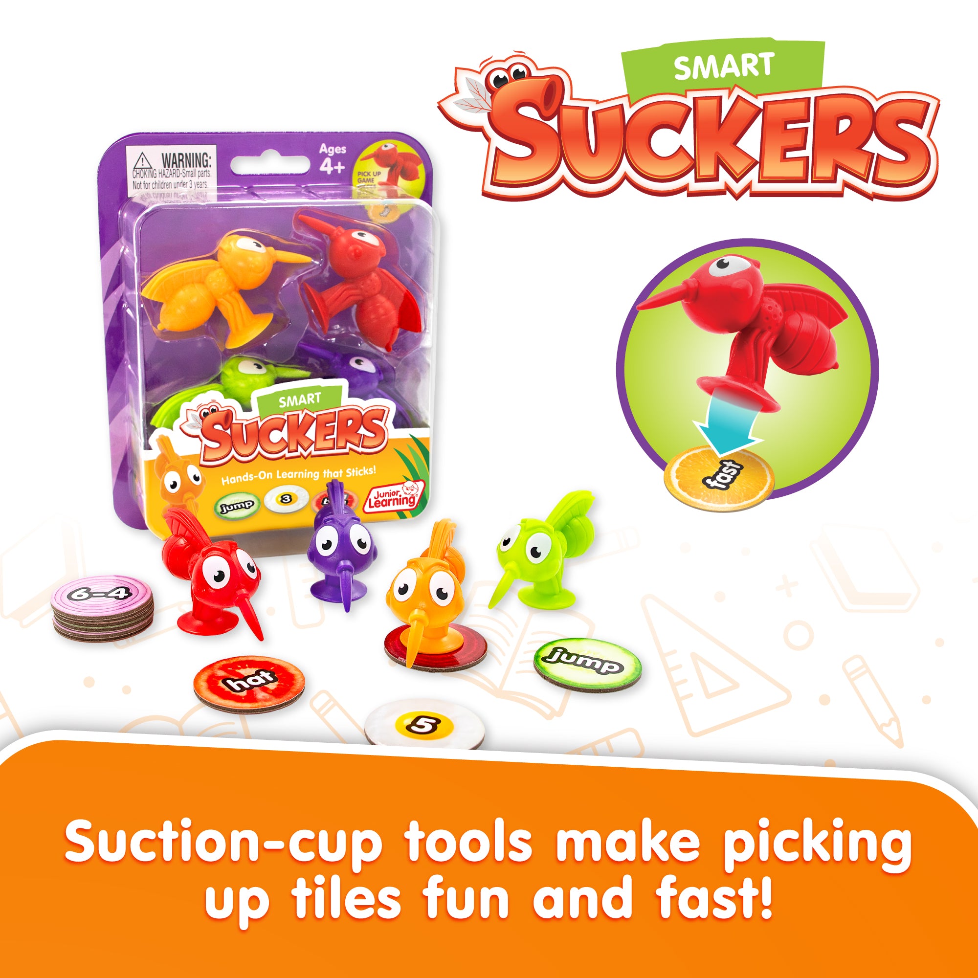 - 1x Smart Suckers (Set of 4) – Suction-cup mosquito tools that make picking up tiles fast, fun, and great for fine motor skills.